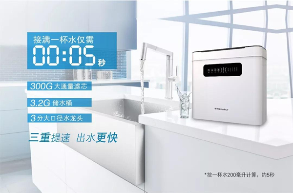 現(xiàn)代快節(jié)奏的生活下,人們對(duì)于“速度”的追求越發(fā)執(zhí)著。此次,榮事達(dá)發(fā)布的300G智能反滲透凈水機(jī)在出水速度提升上可謂是“不走尋常路”。其創(chuàng)新采用“大通量+大‘桶’量+大口徑龍頭”三重提速設(shè)計(jì),一方面選用“300加侖超大通量濾芯”,出水速度達(dá)到傳統(tǒng)50G凈水機(jī)的6倍;另一方面,用戶可DIY選裝3.2加侖儲(chǔ)水桶,搭配三分大口徑凈水龍頭,進(jìn)一步強(qiáng)化出水效率,接滿一杯200毫升水僅需5秒,讓用戶隨時(shí)享受不等待、不斷水的理想生活。