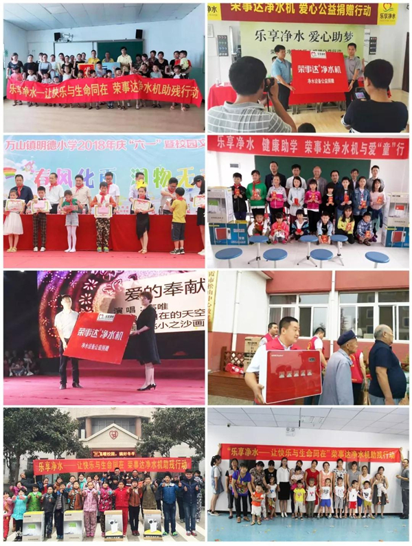 點滴之愛,匯聚成海;踐行公益,永不止步。在公益這條路上,榮事達不忘初心,秉承著“樂享凈水 為愛前行”的公益理念,用實際行動踐行企業社會責任,以公益之心鑄就品牌發展,致力實現“讓中國人喝上健康水”的企業愿景!