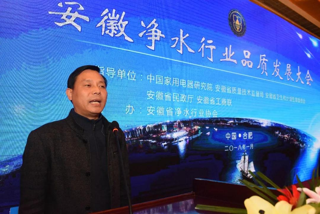 本次大會由安徽省凈水行業協會主辦,得到了中國家用電器研究院、安徽省質量技術監督局、安徽省衛生和計劃生育委員會、安徽省民政廳、安徽省工商聯等單位的大力支持。中國家用電器研究院測試計量技術研究所所長魯建國、凈水器性能研究與測試中心主任王統帥,安徽省工商聯黨組成員、副主席兼秘書長李俊波,安徽省民政廳民間組織管理局副局長闞家安,安徽省質量技術監督局監督處處長程波,安徽省衛生廳衛生監督所監督處處長李軍,安徽省質量技術監督局質量監督檢驗中心主任潘建,山東家電行業協會水處理設備專委會秘書長董信,河北省商業聯合會凈水行業專委會會長、《中國直飲水》總經理梁上音以及協會會長王六一、秘書長柳敏等人出席了大會。大會還吸引了省內外百余家凈水企業和經銷商近200人的熱情參與。