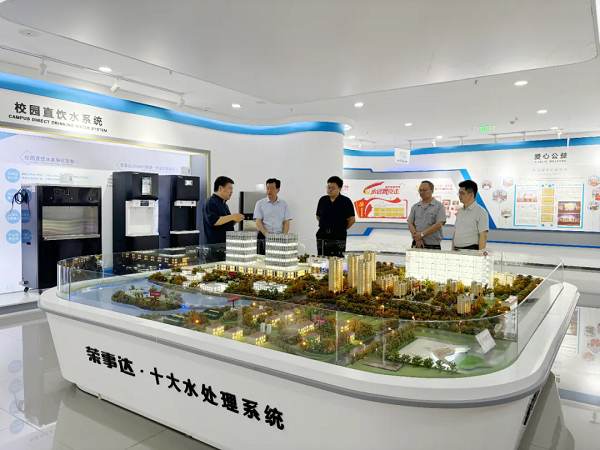 - 7月10日, 三門峽市城鄉一體化示范區(高新區)黨工委委員張立新,大唐新能源產業園運營中心主任、招商局副局長楊華夏,大唐新能源產業園運營中心招商部長李海強一行蒞臨榮事達水工業集團參觀交流,榮事達水工業集團董事長雷鳴,總經理王悅生,生產制造總經理孫曉峰熱情接待。此次參觀中,三門峽市城鄉一體化示范區領導一行首先深入榮事達智能化生產車間,近距離參觀了集團先進的全智能化生產線及七大實驗室。隨后,領導們移步至智慧水世界展廳,全面了解了榮事達水工業集團的發展歷程、輝煌成就、公益貢獻及黨建引領下的企業文化。在展廳內,領導們對榮事達水工業集團的全屋智慧凈水系統、社區智慧飲水系統、醫院用水處理系統、農村安全飲水系統、校園直飲水系統等十大水處理系統表現出了濃厚的興趣。這些系統不僅體現了榮事達在水處理領域的深厚技術積淀,也彰顯了其致力于通過科技創新改善民眾生活質量的堅定信念。在座談會上,領導們認真觀看了榮事達企業宣傳片和榮事達凈水工廠宣傳片。董事長雷鳴,作為地道的河南人,對家鄉領導的到來表達了由衷的歡迎。他還就集團的多元化產品矩陣、市場發展戰略及持續創新能力進行了詳細介紹。總經理王悅生特別強調集團順應新基建趨勢,結合物聯網、大數據和云計算技術,首創社區智能凈水工廠項目,展現凈水科技創新實力,并獲得20項專利,行業領先。三門峽市城鄉一體化示范區(高新區)黨工委委員張立新對來自家鄉并在合肥取得輝煌事業成就的雷鳴董事長表達了高度的贊賞與由衷的欣喜。他特別指出,榮事達水工業集團在水處理領域的卓越成就令人震撼,不僅展現了企業強大的技術實力和市場競爭力,更彰顯了其勇于創新、追求卓越的精神風貌。希望以此次交流為契機,增進聯絡,架起一座交流互通的橋梁。