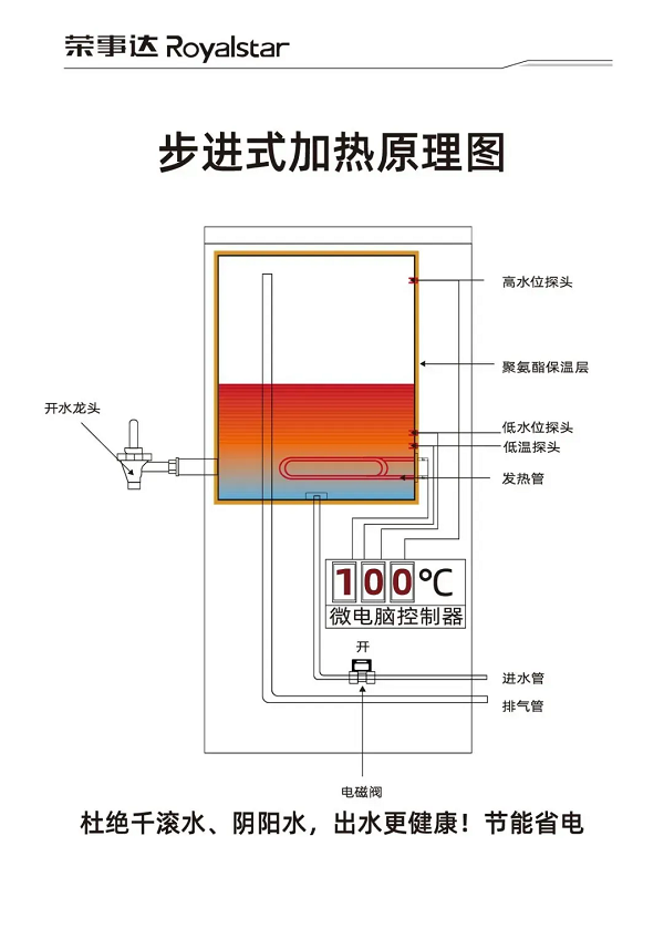 設備采用了RO反滲透技術(shù)、多級凈化等工藝,有效去除了水中的泥沙、鐵銹、重金屬、余氯等有害物質(zhì),確保水質(zhì)干凈、安全。同時,步進式加熱設計避免了“陰陽水”的產(chǎn)生,保證了連續(xù)供應開水的品質(zhì)。