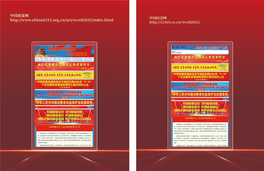 在由中國質(zhì)量檢驗(yàn)協(xié)會(huì)主辦的2025年“3.15”產(chǎn)品和服務(wù)質(zhì)量誠信承諾的主題活動(dòng)中,榮事達(dá)水工業(yè)公司憑借卓越的產(chǎn)品品質(zhì)及良好的社會(huì)形象,獲得協(xié)會(huì)以及專家的一致認(rèn)可,榮膺“全國行業(yè)質(zhì)量領(lǐng)先品牌” “全國產(chǎn)品和服務(wù)質(zhì)量誠信承諾企業(yè)” “全國消費(fèi)者質(zhì)量信譽(yù)保障產(chǎn)品” “全國質(zhì)量檢驗(yàn)穩(wěn)定合格產(chǎn)品”多項(xiàng)榮譽(yù),并在中國質(zhì)量網(wǎng)、中國經(jīng)濟(jì)網(wǎng)、中國產(chǎn)品質(zhì)量信譽(yù)網(wǎng)等多家媒體上集中展示和公告。